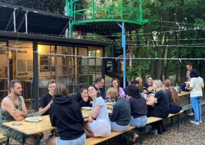 Die Summer School fand im Rahmen des Horizon Europe-Projekts „Petroculture`s Intersections with The Cultural Heritage Sector in the Context of Green Transitions” (PITCH) statt. Organisiert von dem Philosophie- und Kulturanalyseprofessor Jeff Diamanti (University of Amsterdam), dem Designer, Forscher und Organiser für einen postkapitalistische Systemwandel und Klimagerechtigkeit Selçuk Balamir (University of Amsterdam) und dem Heritage-Forscher Colin Sterling (University of Amsterdam) beschäftigten wir uns mit der vergangenen Energieproduktion im Braunkohlekraftwerk, der kulturellen Rahmung des „Arbeiter- und Bauernstaates“ DDR, dem Zusammenhang zwischen industrieller Produktion und sozialer Reproduktion, mit den jetzigen politischen Spannungen im Strukturwandel und zukünftigen Visionen einer „post-carbon form“.